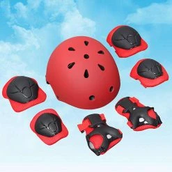 Toyvian 7 Pcs Enfants Coude Poignet Genouillères Casque Enfants Sports Sécurité Équipement De Protection Skateboard Skate Accessoires (rouge)