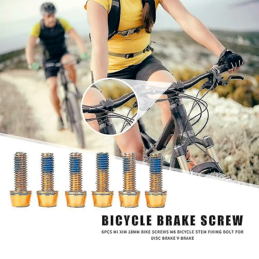 6pcs Mi Xim M6x18mm Bicycle Headset Stem Fixing Bolt Screws for Disc Brake V Brake Cycling Riding Bike PartsSpecification:Main material: SteelColor: Red, Gold, ColorSize: about 18x10x10mm/0.71×0.39×0.39inBolt diameter: 6mm/0.24inNet weight: about 6g(single)Type: M6*18mm, use 5mm hexagon wrenchApplication: generally used to fix front fork end screws, disc brakes, V brakes, etc.Note:1. Due to the different monitor and light effect, the actual color of the item might be slightly different from the color showed on the pictures. Thank you