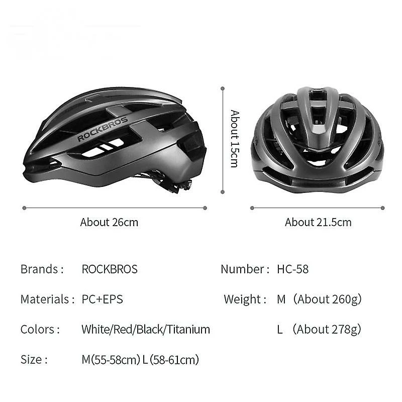 Material :EPSAge group :(adult) MaleType: Integral helmetAir Vents: 16-20Certification :ceWeight in grams: 260gModel number :HC-58Suitable for :MTB road bike, hiking, camping helmetName: Cycling Men’s and Women’s Breathable fashion Cycling helmetMaterial: Outside :PC, inside :EPS, nylon adjusting beltHelmet size: about 26*21.5*15cmSuitable for head size :S:55-58cmColor: Gradual changeWeight: About 260GFeatures: Ultra-light/sweat-proof/shockproof/airyDesign: Air cooled, air free